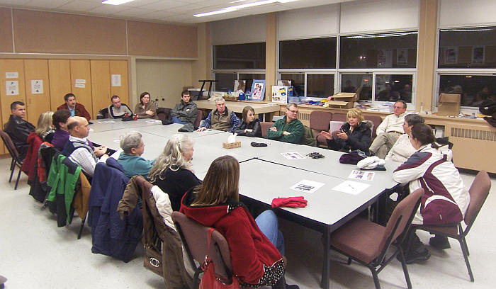 It was a "standing room" only turnout for the Feb. 22nd meeting of the CAN where Pierre Perrault of the Off-Leash Dog Park Committee is shown addressing those in attendance. A report on the meeting is below. Results of Minnow Lake CAN meeting – Feb. 22nd Minnow Lake Place. Attendance 45 including City Traffic Staff and Councillor Terry Kett The most concern about traffic in the area was about the uninterrupted volume of vehicles along the Howey, Bellevue, Bancroft corridor. There is only one stoplight along this approximately 5 kilometer in length route and no stop signs, and many drivers use this route as an alternative to the Kingsway. Speeding was not felt to be a problem, just the inability for many to enter the continuous stream of traffic at many times of the day. City traffic personnel who were in attendance did not offer any solutions to this problem. Poor signage was identified as a problem on the Bancroft from Belleuve intersection to the Kingway (and vice-versa) and it was felt that a stop sign should be located at the intersection of Bancroft and Lonsdale at the sight of a dangerous ill constructed curve which would help keep motorists from running of the road at this point due the roads reverse camber which councilor Terry Kett said is one of his priorities to be addressed and have corrected. City traffic staff said they would look at the signage situation. Councillor Kett also said one of his main priorities was to have the remaining section of Bancroft Drive from Leveque Street to Moonlight Ave reconstructed to the same standard as the rest of Bancroft Drive. This would not only improve one of the worst sections of road in the city but would complete the bike route lanes around Ramsey Lake. There was unanimous support for the proposed Off-leash dog park in the former gravel pit property off Second Avenue and all agreed that the city should approve the expenditure which includes previous city plans for a new access to the area and cleaning up of hazaderous waste on the property. These expenditures the group felt should not be included in the cost of the dog park which is estimated at only around $50,000 a relatively small amount when considering the overall benefits to the city in improving an admitted eye-sore in an area very much in public view as well as an asset for the more than 50,000 dog openers in the city who could make use of the facility. Further information: John Lindsay, Chair – 525-7526